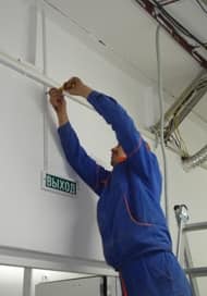 ЗаказатьКод знака Е 18. Размещается на дверях помещений для указания направления открывания дверей.